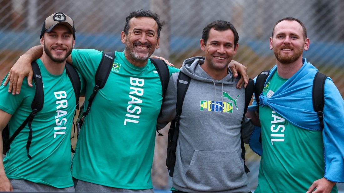 Professor Carlão (segundo), na comissão técnica (Wagner Carmo/CBAt).