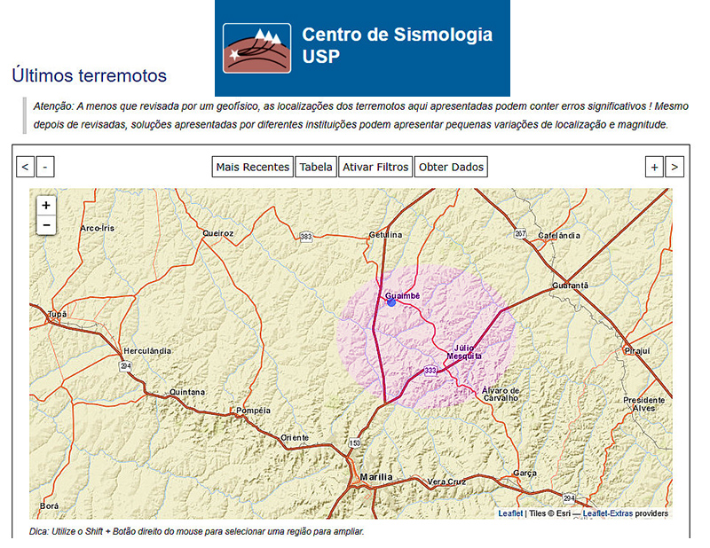 É a segunda vez neste ano que tremores são sentidos em Guaimbê. Em março foi registrado um tremor de terra de magnitude 3.0, com epicentro na mesma localidade.
