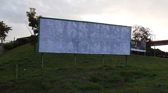 Outdoor com publicidade foi ocultado após instalação e repercussão (Imagens: Reprodução).