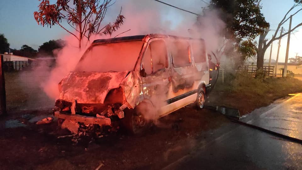 O Corpo de Bombeiros foi acionado e quando chegou ao local a van estava completamente em chamas. A equipe atuou para combater o incêndio, com o apoio de um caminhão-pipa.