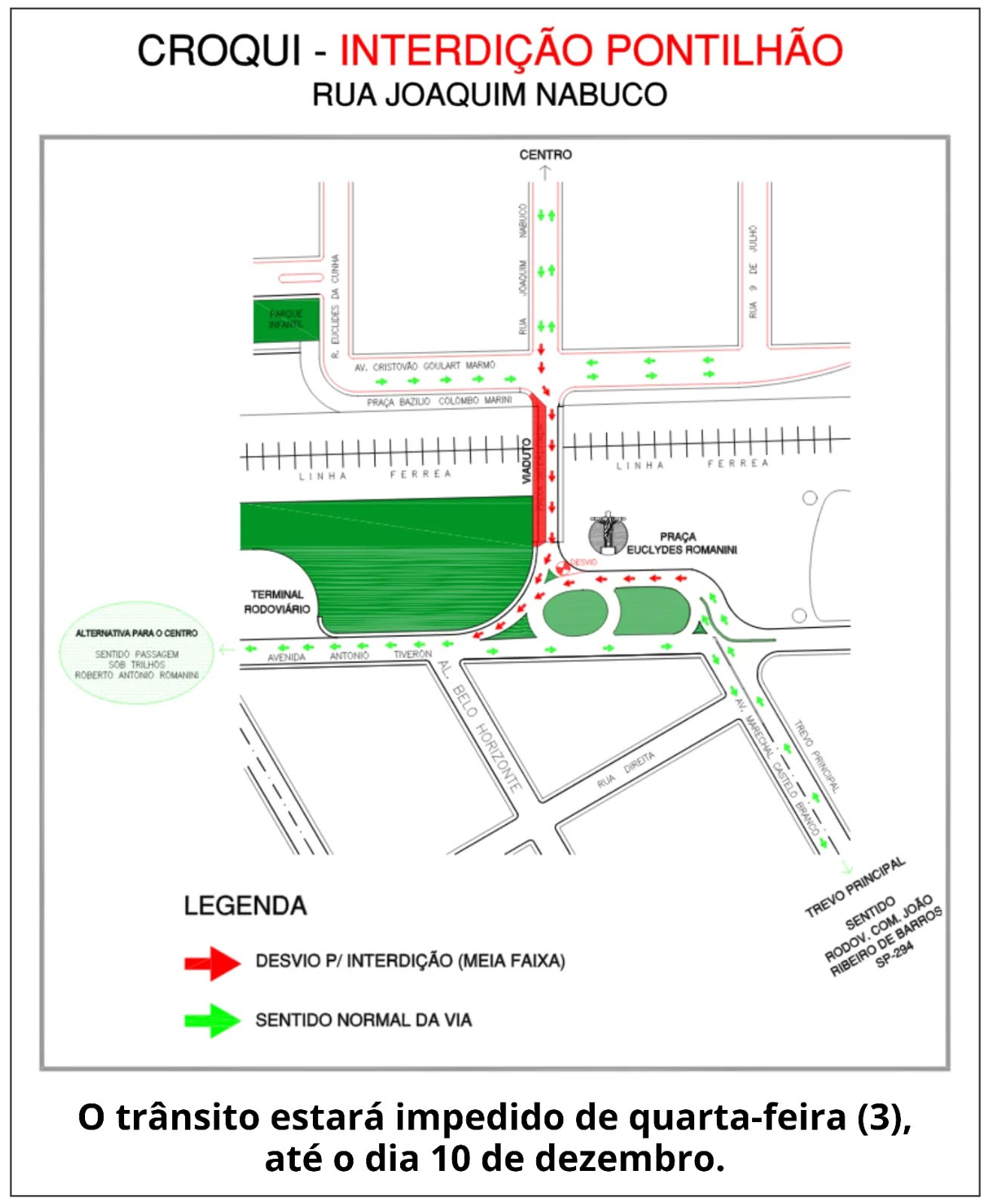 A Prefeitura de Adamantina, por meio da Secretaria de Planejamento, informou nesta terça-feira (2) que o viaduto da Rua Joaquim Nabuco está com o trânsito de veículos parcialmente interditado para obras, o que começou a vigorar nesta quarta-feira (3) e segue até a próxima quarta (10).