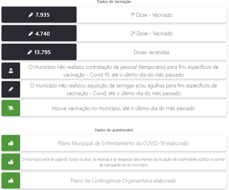 A ferramenta do Tribunal de Contas também informa outros dados, como número de casos, vacinação, compras de insumos e equipamentos, para o período. Veja: