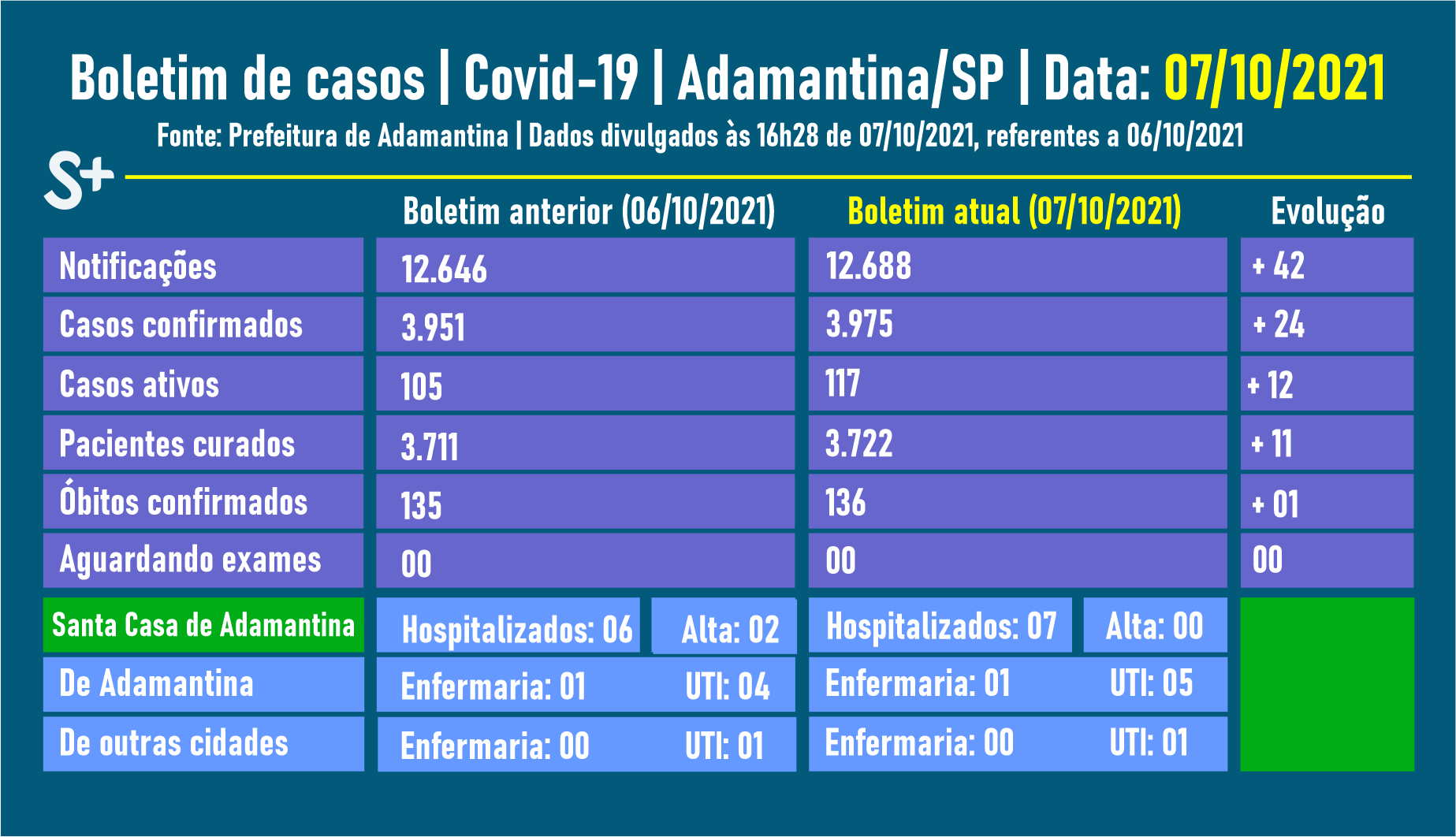 Quadro epidemiológico de ontem (7), quinta-feira (Arte: Siga Mais).