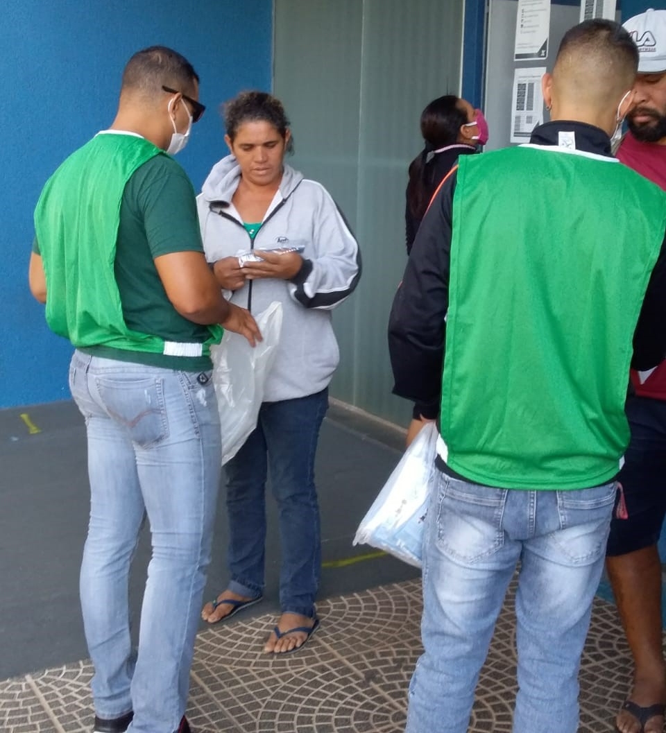 A Prefeitura do Município de Adamantina, por meio da Secretaria de Fiscalização e Arrecadação Tributária, realizou nesta quinta-feira (30) a distribuição de máscaras de proteção facial e intensificou a orientação sobre o distanciamento nas filas, nos pontos de maior aglomeração no centro da cidade, sobretudo a agência da Caixa (veja nota). A ação contou com a participação de servidores públicos municipais.