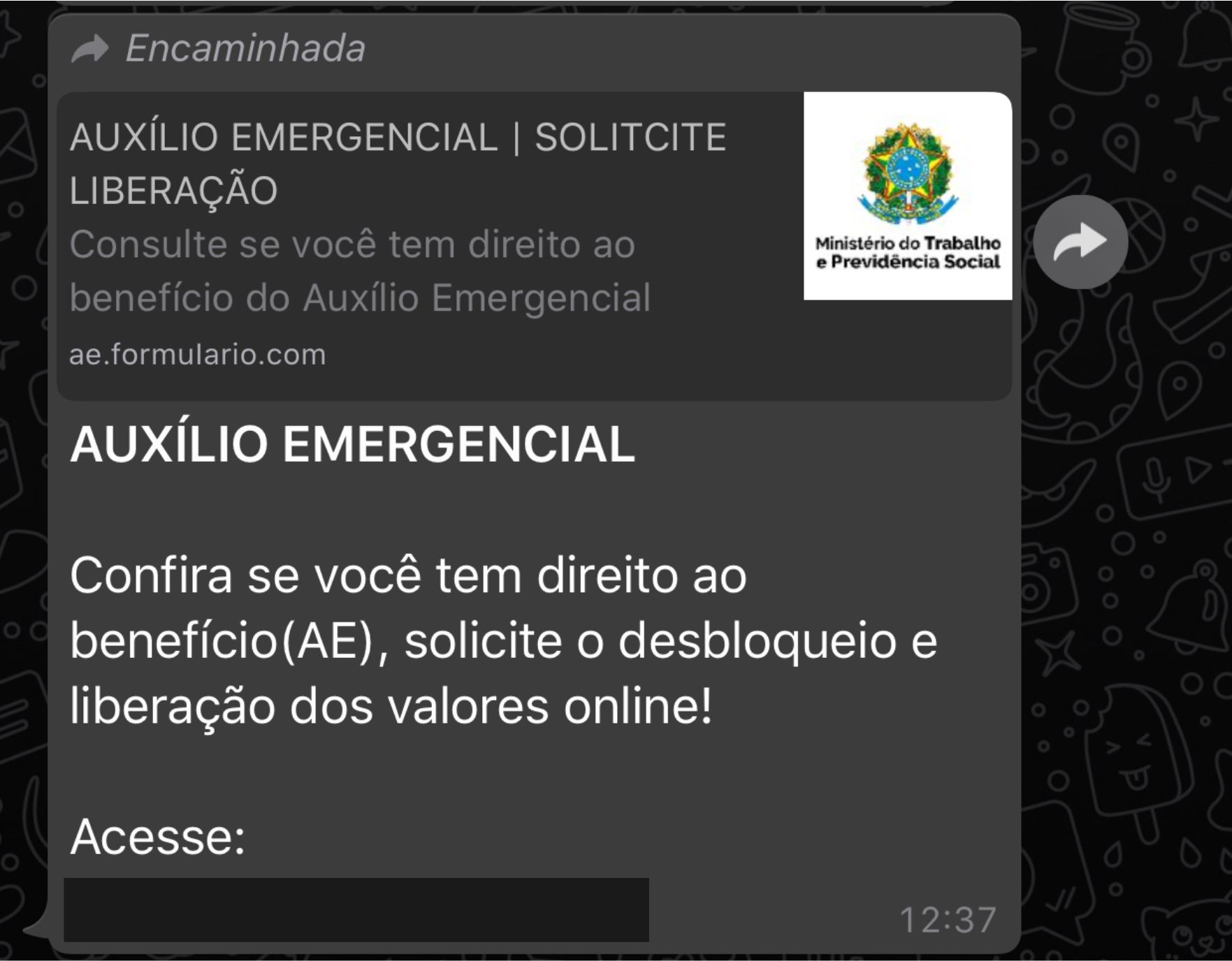 Alerta: mensagem com link de cadastro para o auxÃlio emergencial é golpe