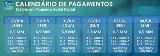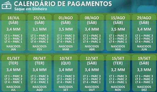Para aqueles que quiserem realizar o saque em dinheiro, o calendário de pagamento vai de 18 de julho a 19 de setembro, também de acordo com o mês de nascimento. Nas respectivas datas, havendo saldo remanescente na poupança digital, o valor será transferido automaticamente para a conta que o beneficiário indicou no cadastro, sendo da Caixa ou conta em outro banco. (Continua após a publicidade...)