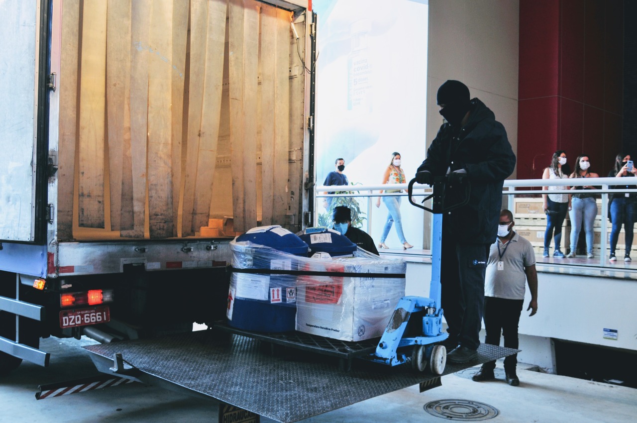 A Fiocruz recebeu nesta quarta-feira (2), dois bancos, um de células e outro de vírus, para a produção do Ingrediente Farmacêutico Ativo (IFA) nacional da vacina Covid-19 Fiocruz. O material, vindo dos Estados Unidos, desembarcou no Aeroporto Internacional do Rio de Janeiro (Galeão) por volta das 8h e após desembaraço aduaneiro seguiu para o Instituto de Tecnologia em Imunobiológicos (Bio-Manguinhos/Fiocruz), onde o imunizante será produzido. O banco de células foi enviado em nitrogênio líquido, mantidos a uma temperatura de aproximadamente -150ºC, e o banco de vírus em gelo seco, a cerca de -80ºC. Os dois componentes compõem a base para a produção do IFA.