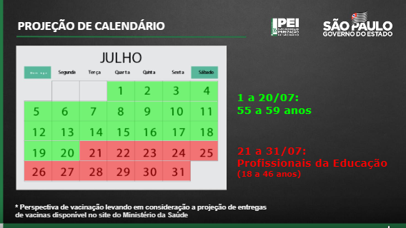 Considerando esse cenário, a previsão de vacinação para o estado de São Paulo, é a seguinte: