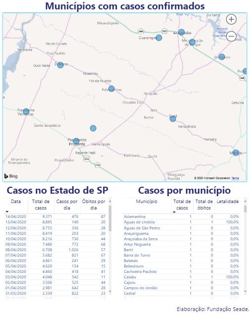 Também são 9.371 casos confirmados do novo coronavírus, 476 a mais na comparação com esta segunda-feira (13). Já são 183 cidades com pelo menos um caso e 73 municípios com no mínimo um óbito.