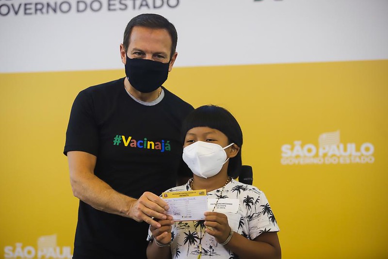 A primeira criança vacinada contra Covid-19 no Brasil é um garoto indígena de 8 anos. Davi Seremramiwe Xavante vem periodicamente a São Paulo para um tratamento de saúde no Hospital das Clínicas da USP. O Governador João Doria acompanhou o início da campanha estadual para crianças de 5 a 11 anos no início da tarde desta sexta-feira (14).