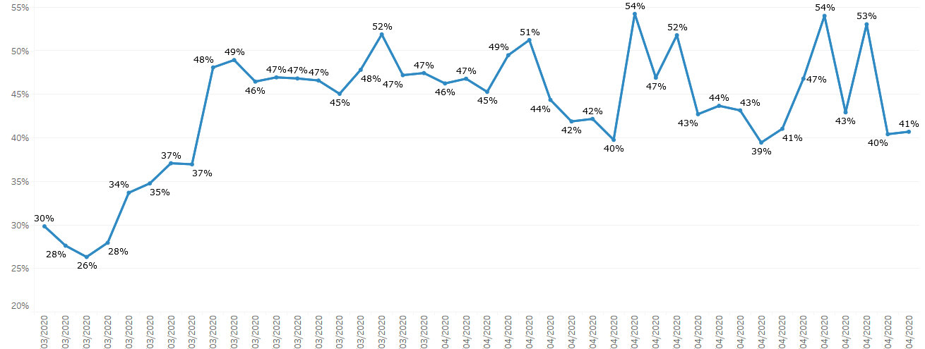 Desde que começou o monitoramento, a cidade ultrapassou a linha dos 50% em apenas seis vezes.