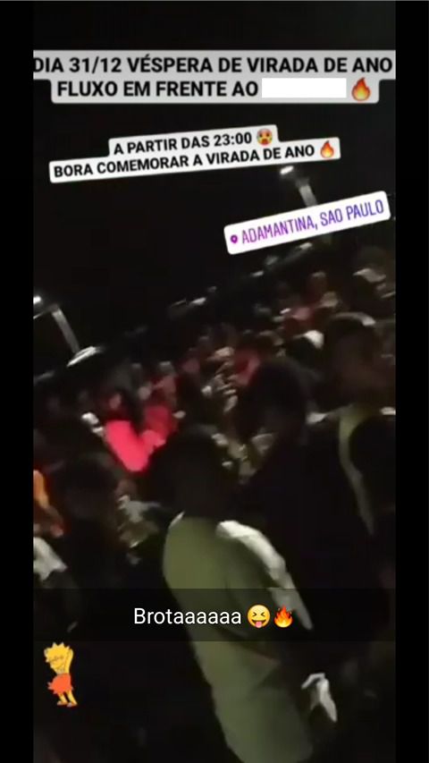 Chamado para aglomeração no réveillon: nome do estabelecimento foi suprimido porque não é possível afirmar que haja relação do local com a divulgação anônima (Reprodução).