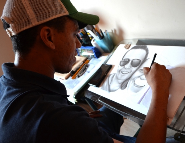 Os muitos questionamentos que chegaram até ele impulsionaram-no a pesquisar, e foi na internet que encontrou as primeiras informações, referências e técnicas. Em paralelo, começou a experimentar e traçar os primeiros retratos. Um a um, retrato a retrato, foi ganhando maturidade, confiança e técnica, o que hoje se tornou uma fonte complementar de renda, já que atende pedidos para criação de retratos, a partir da observação de fotografias.