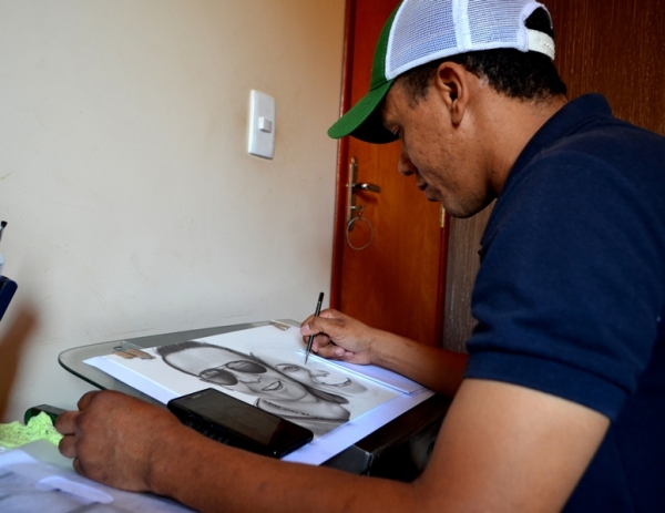 A partir de fotografias, mecânico produz retratos realistas em Adamantina.