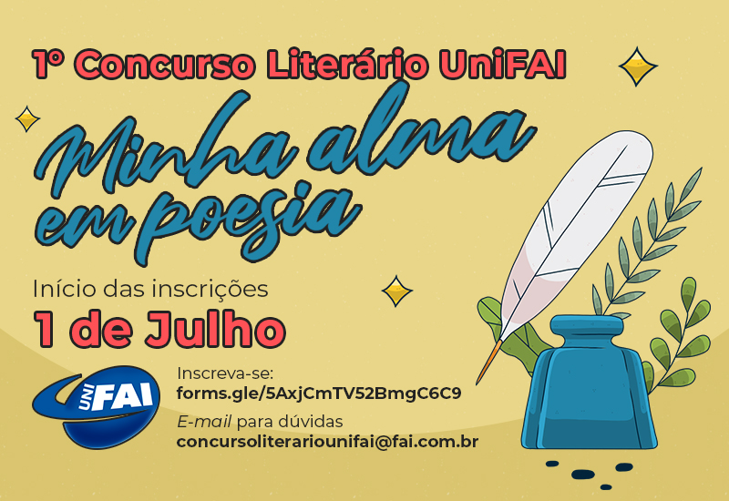 De 15 a 19 de agosto inicia-se a etapa final. Os 20 textos selecionados poderão ser votados pelo público externo em link específico disponível posteriormente no portal da UNIFAI e nas suas redes sociais. O autor do melhor texto receberá sua premiação no dia 22 de agosto. Saiba mais.