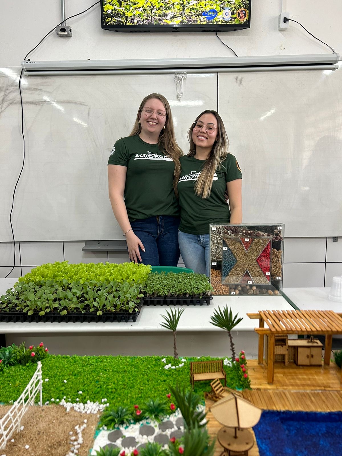 As alunas do curso de Agronomia do Centro Universitário de Adamantina, Lívia Santos e Maria Clara Brito e Silva, participaram de uma atividade extensionista na escola estadual Osvaldo Martins, de Osvaldo Cruz, como parte do programa de ensino integral, no componente curricular eletiva “Do campo à mesa”, desenvolvida pelas professoras Débora Tripolone e Edelma Alencar Lima Jacob. ##banner1#