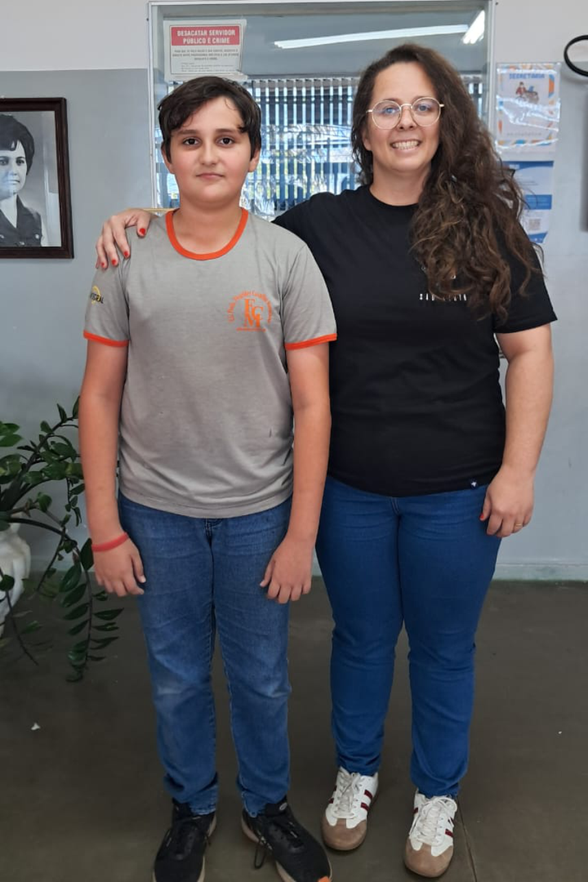 O aluno Rafael Guerrero e a professora Suellen Morelli (Cedida).