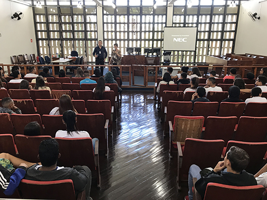 Estudantes foram recepcionados no salão do Tribunal do Júri do Fórum de Adamantina (Foto: Siga Mais).