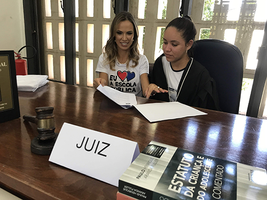 A dramatização situacional, com o protagonismo dos alunos na audiência simulada, acompanhada pelos demais estudantes, permitiu a discussão sobre direitos e deveres do adolescente, o posicionamento legal em relação ao comportamento do estudante, a abordagem sobre cidadania e fortalecimento do caráter e valores estruturais no processo educacional. “O foco consiste em despertar a compreensão do papel de cada um no desenvolvimento estrutural da sociedade e a real participação no que se refere ao poder e grau de intervenção e transformação de espaços comunitários”, completou.