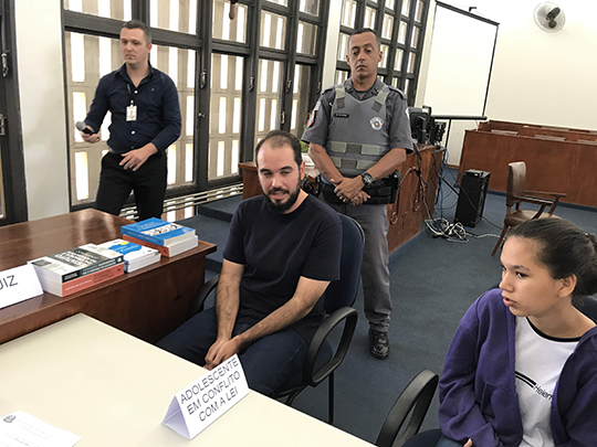Na audiência foi julgada a conduta do adolescente infrator, que havia sido flagrado em ato infracional de tráfico de drogas na escola onde estuda, e na mesma ocasião teria desacatado a professora em sala de aula.