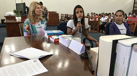 Juíza Ruth Duarte Menegatti orienta a juíza mirim (Foto: Siga Mais).