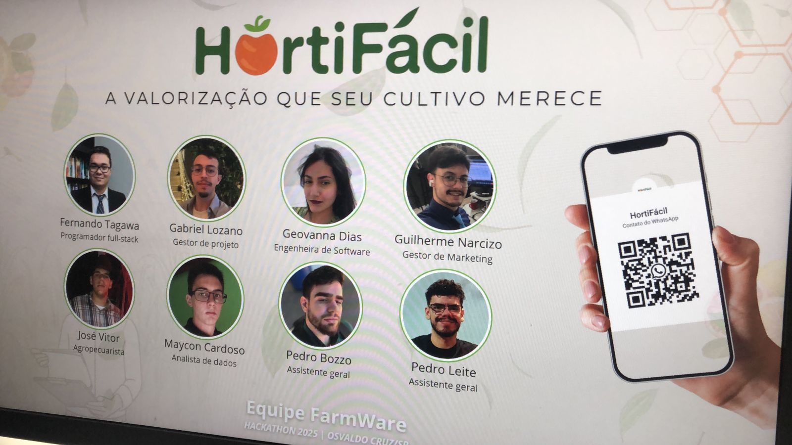O desafio escolhido pela equipe foi a desvalorização e descentralização dos produtos do pequeno agricultor. Como solução, os estudantes criaram o HortiFácil, um aplicativo integrado a um chatbot via WhatsApp. O agricultor responde a um fluxo pré-definido de perguntas e, ao final, seus produtos são cadastrados automaticamente na plataforma digital.