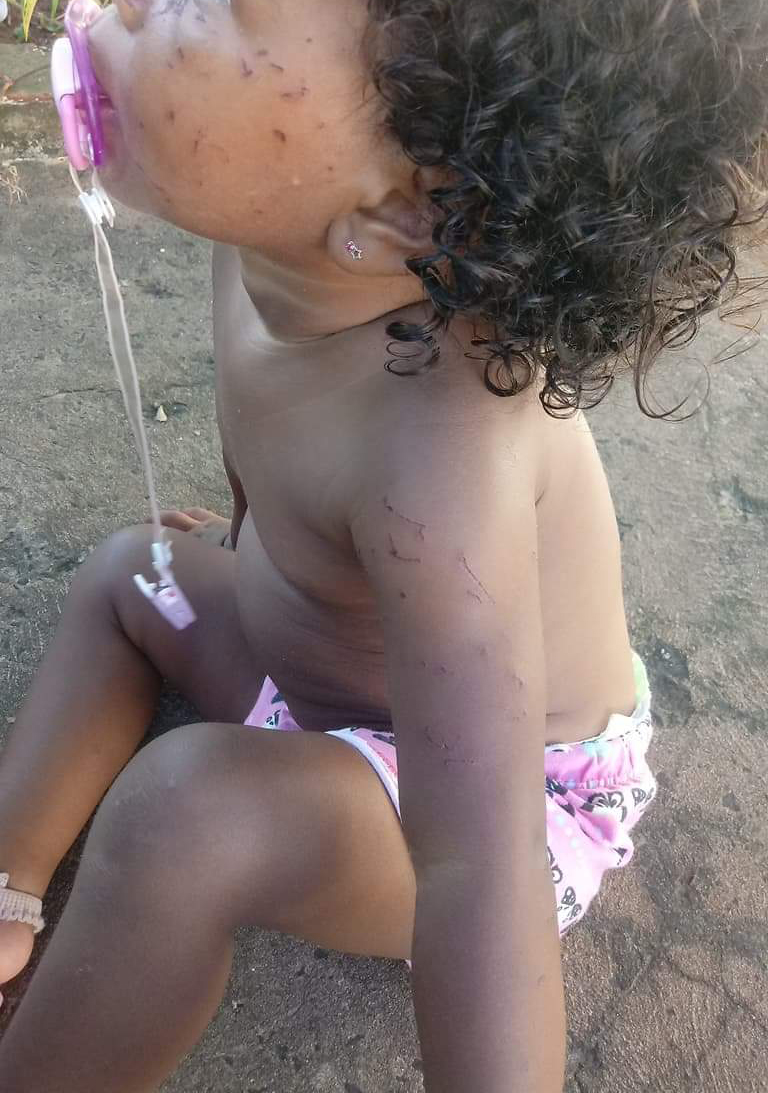 A situação que poderia ser corriqueira se tornou um caso de polícia quando a mãe percebeu a gravidade das lesões. Pietra apresentava diversos ferimentos no rosto e no corpo, principalmente no braço direito. Ela ainda não fala, mas estava com medo e chorando quando a mãe chegou na escola.