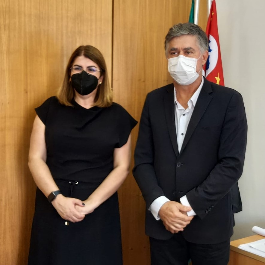 Márcio Cardim, em São Paulo, para reunião com a coordenadora do Ciebp (Centro de Inovação da Educação Básica Paulista), Débora Garofalo (Divulgação/PMA).