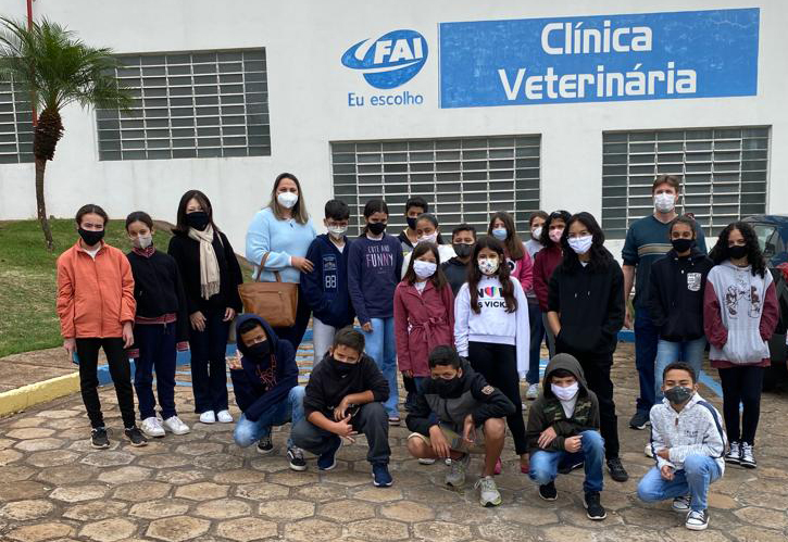 Da mesma forma, os alunos do 5º ao 9º anos, integrantes da matéria da base diversificada (Eletiva), da escola Grion, também tiveram esse mesmo contato com o conhecer da profissão de médico veterinário e a estrutura da UniFAI. As professoras Silvia Regina Mantovani Gomiéris, Regina Cavaccini e Rosângela Sanches acompanharam os alunos na visita.
