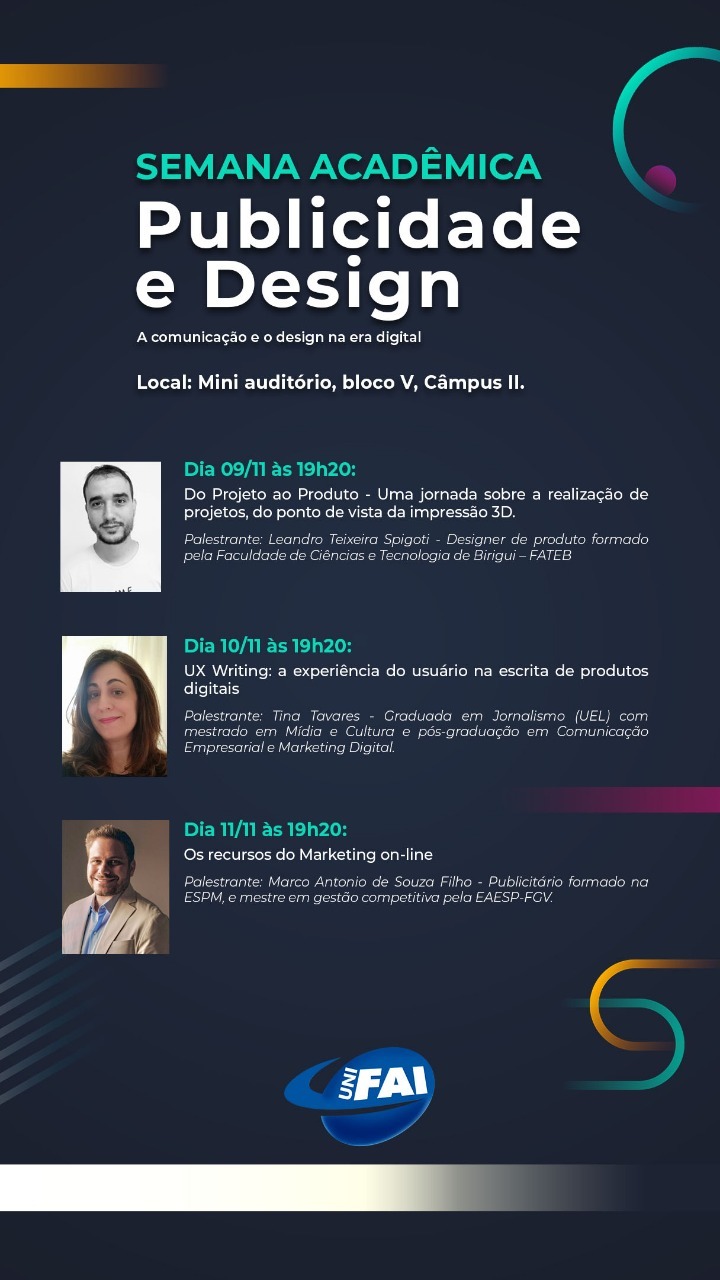 UniFAI promove Ciclo de Comunicação e Design nesta semana, de 9 a 11 de novembro.