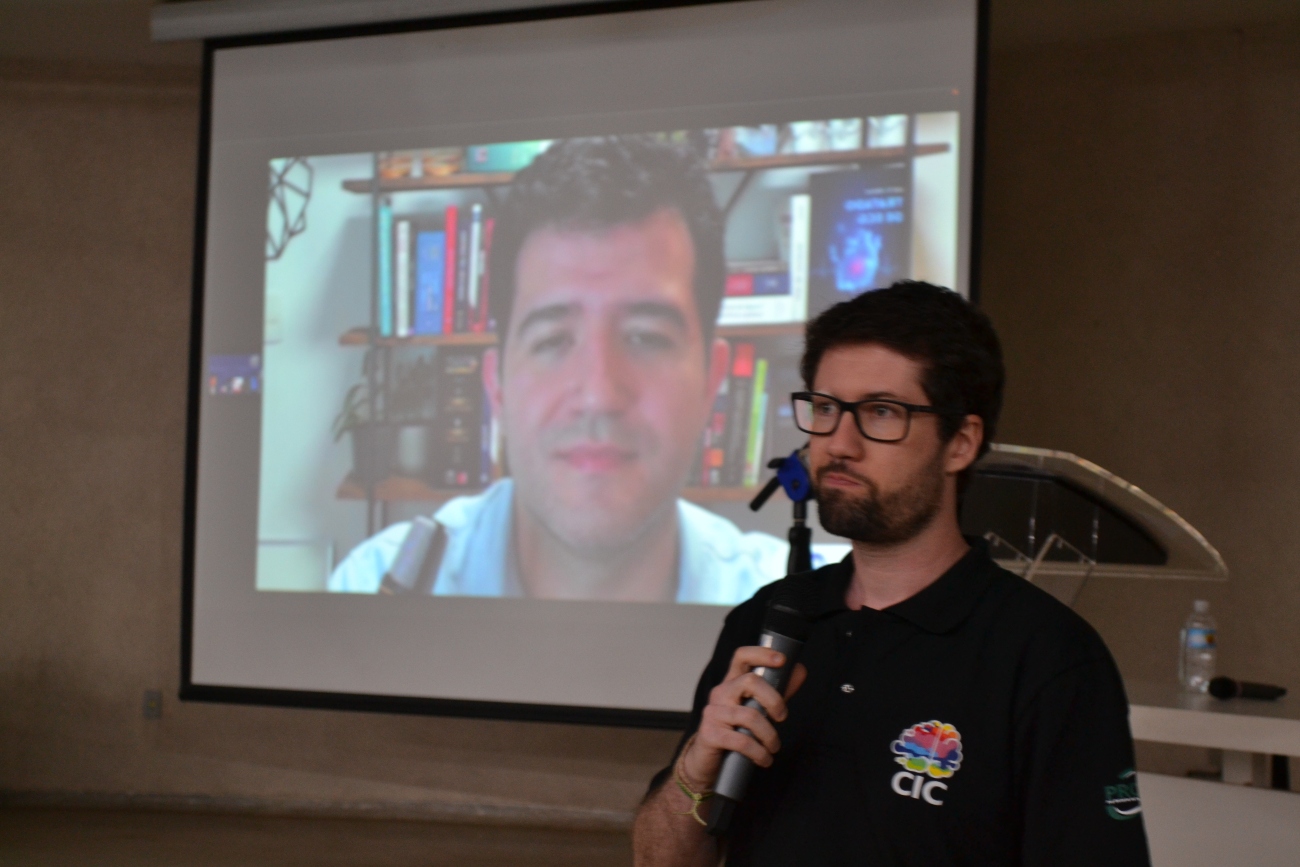 Coordenador de Comunicação Científica agradece palestrante José Nunes de Alencar Neto (Imagem: Daniel Torres).