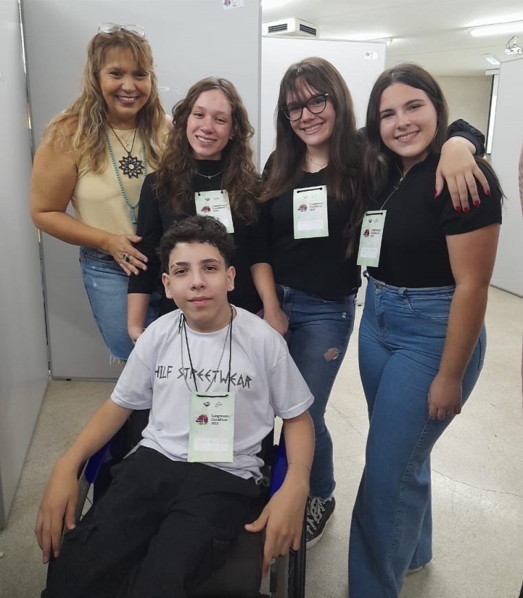 Alunos da escola Cristã de Adamantina junto à Prof.ª da disciplina de História, Rosângela Romano (Priscila Caldeira).