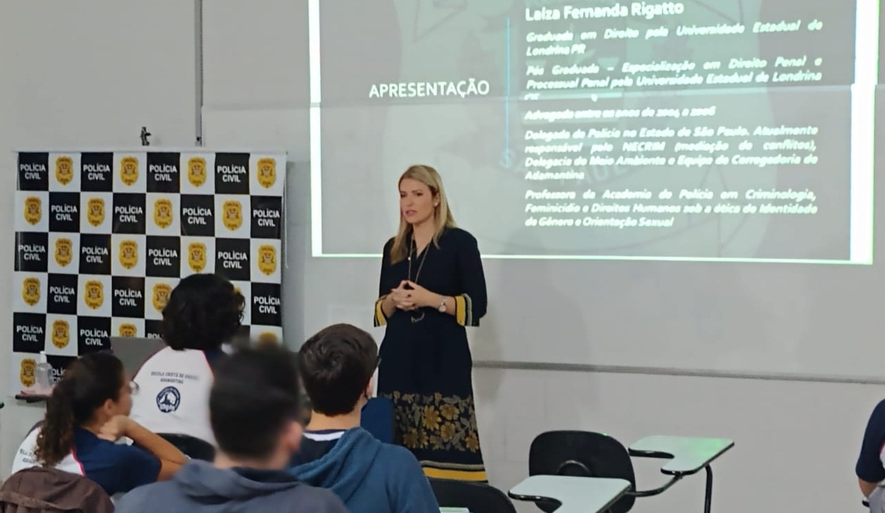 Na manhã da última sexta (28) a delegada de polícia Laíza Fernanda Rigato Andrade ministrou palestra na Escola Cristã de Adamantina, sobre bullying. Laíza é delegada assistente na Delegacia Seccional de Polícia de Adamantina.