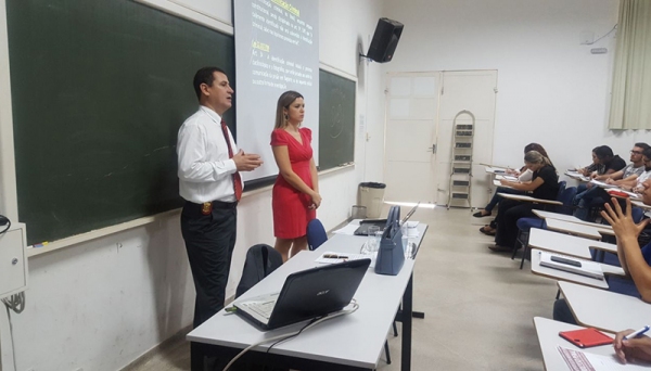 No último sábado (21), o módulo referente à “Produção de provas no inquérito policial” contou com a participação dos Delegados de Polícia Carlos Roberto Vasconcelos e Laíza Fernanda Rigatto Andrade, ambos assistentes na Delegacia Seccional de Polícia de Adamantina e também responsáveis pela Equipe de Corregedoria e Núcleo Especial Criminal de Adamantina, respectivamente.