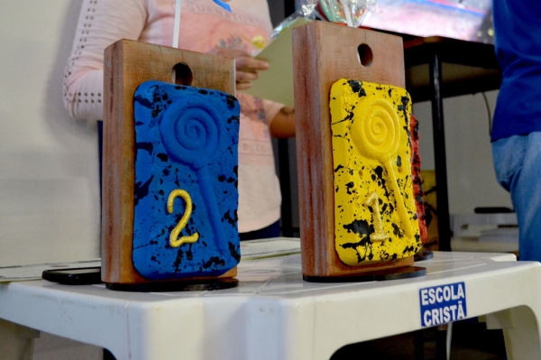 Os troféus foram produzidos pelo idealizador do concurso, professor Iris Nishiura, a partir de madeira e modelagem em concreto, que por sua vez é uma silhueta bem humorada de um pirulito, em clara menção ao “lambe-lambe”.