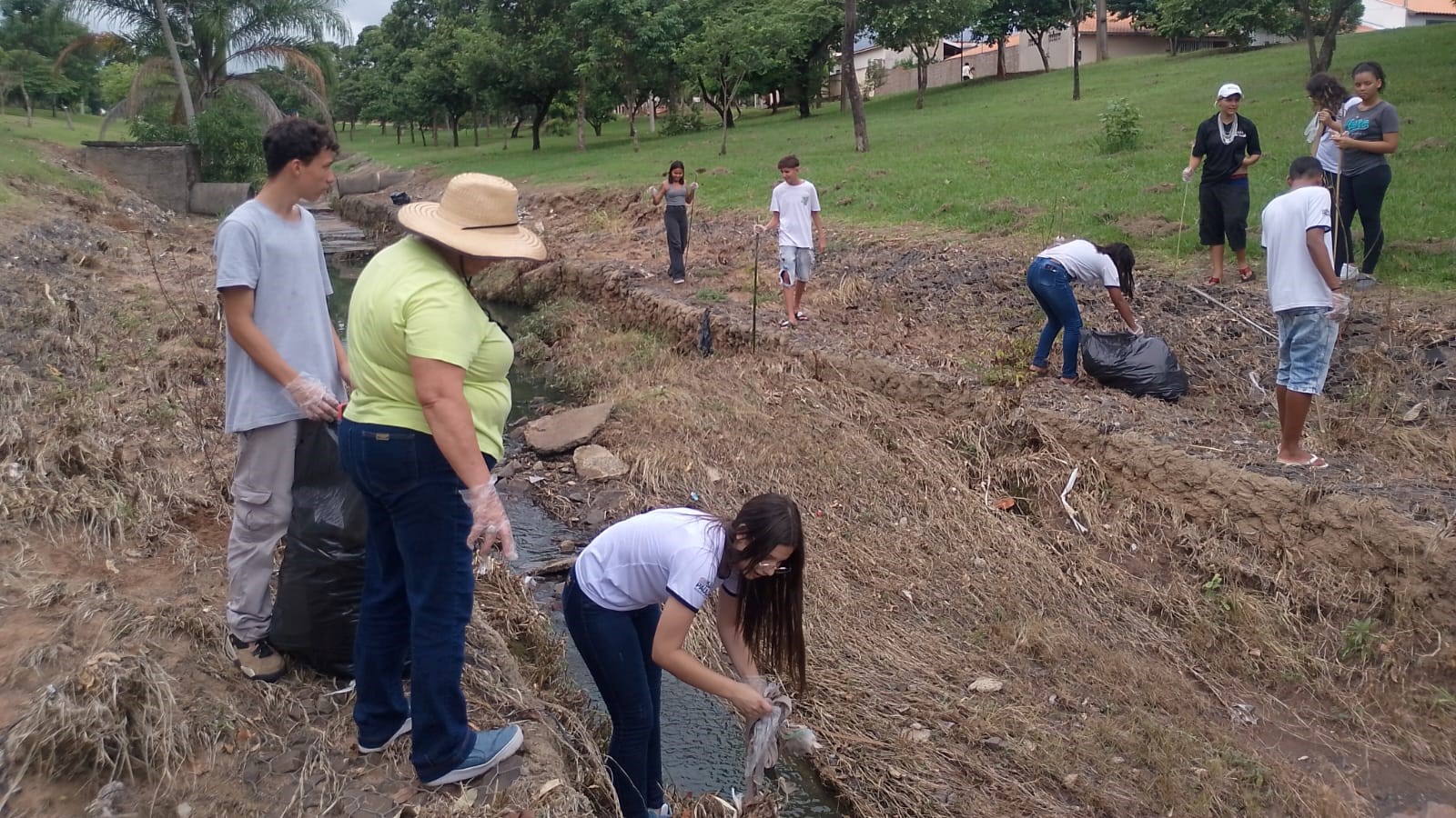 Nesta terça-feira (26) um grupo de alunos da Escola Estadual Helen Keller, de Adamantina, acompanhados pelos Professores Magali e Tiago, além dos funcionários da Secretaria de Abastecimento, Agricultura e Meio Ambiente (SAAMA), realizaram uma atividade in loco no Córrego Caldeira, na área canalizada abrangida pelo Parque Caldeira.