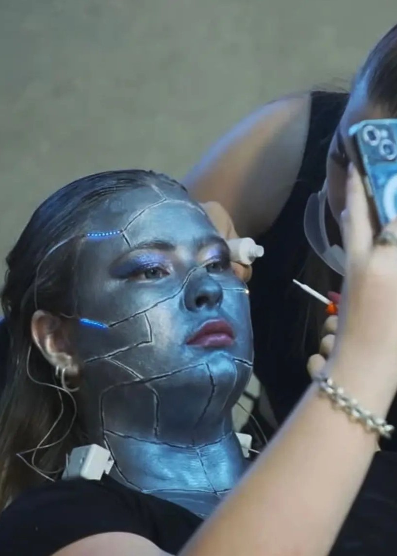 Já o 3º lugar foi conquistado por Bruna Santos e Gabriela Rorato, que apresentaram a maquiagem “Busca da perfeição”, uma crítica à obsessão pela estética idealizada e os perigos de perder a autenticidade em busca de um ideal inatingível. A modelo, presa em uma série de procedimentos estéticos, transforma-se até se desconectar de sua verdadeira essência, simbolizada por uma bomba cardíaca e um respirador artificiais. Com traços exagerados e expressão congelada, ela representa o vazio e a artificialidade que surgem quando se busca corrigir cada imperfeição, lembrando que a verdadeira beleza está na autenticidade e na individualidade.