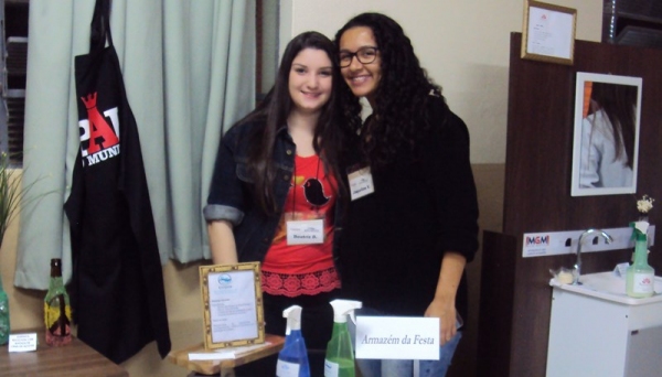 Ainda, no mesmo dia, alunos do Curso Técnico em Química também expuseram produtos de limpeza doméstica desenvolvidos durante o semestre letivo.