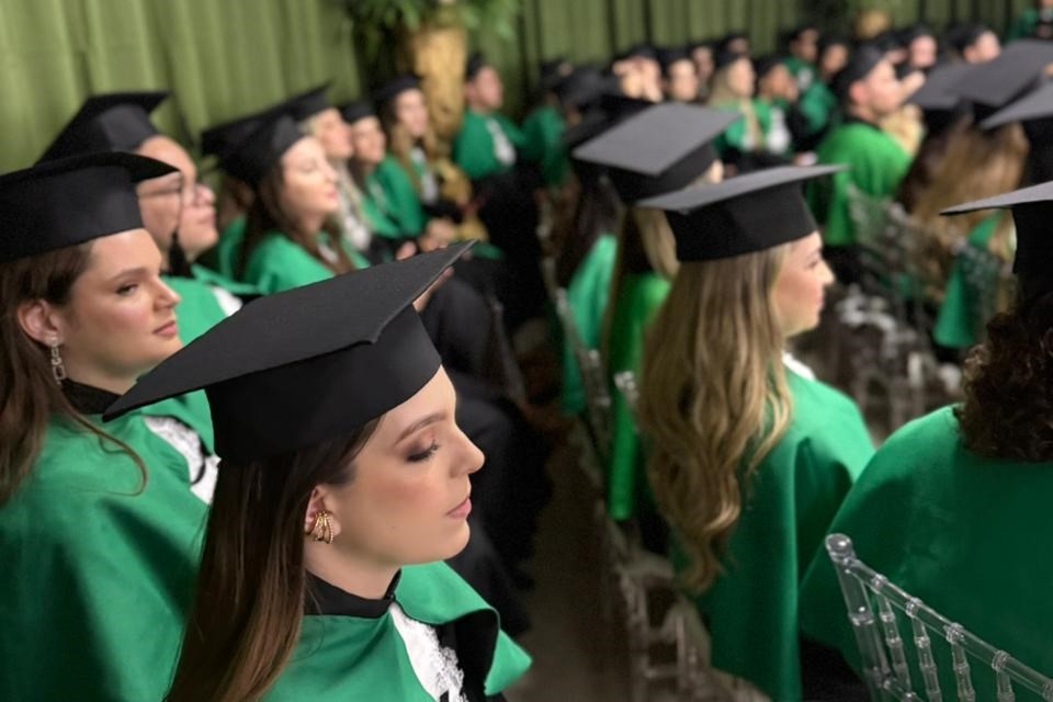 A Prof.ª Dra. Márcia Zilioli Bellini concedeu a outorga de grau e durante a entrega simbólica dos diplomas, o patrono, o paraninfo e o coordenador do curso participaram da consagração dos novos profissionais, reafirmando a importância da dedicação e do esforço ao longo do curso.