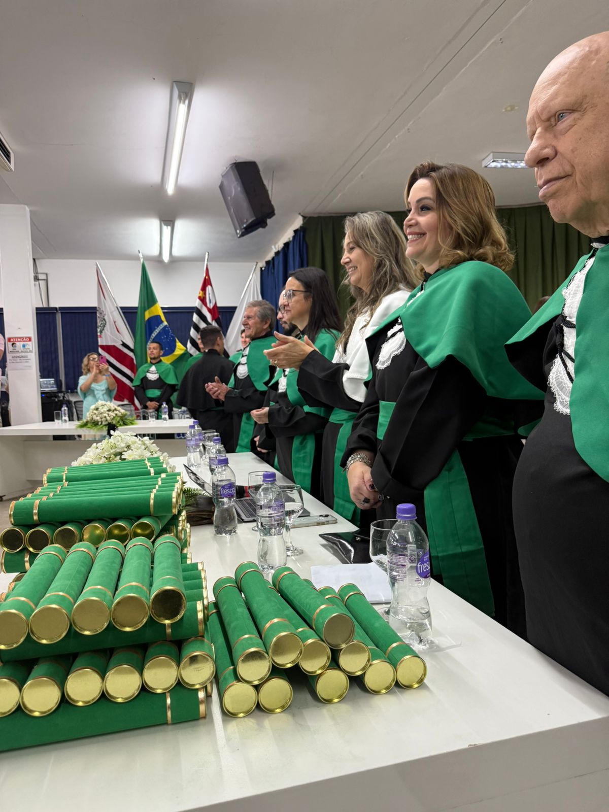 A cerimônia foi abrilhantada pelos emocionantes discursos dos professores Rubio e Osmar. A Prof.ª Dra. Márcia Zilioli Bellini, pró-reitora de pesquisa e pós-graduação, deseja que o conhecimento e a ética, pilares da formação que receberam, sejam sempre as luzes que guiarão suas decisões e ações. “Parabéns a todos os formandos e às famílias que os apoiaram nesta caminhada. O futuro de vocês é promissor!”, destaca.