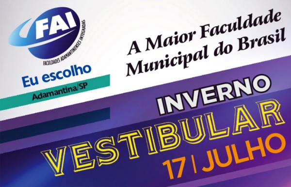 O Vestibular de Inverno 2016 da FAI está marcado para o próximo domingo, 17. As provas serão aplicadas a partir das 13 horas no Câmpus II e terão duração de quatro horas. As inscrições ainda podem ser feitas até quinta-feira, 14, pela internet, no hotsite www.fai.com.br/vestibular.