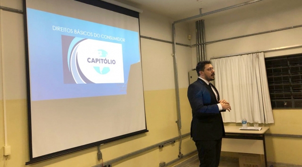 Na penúltima noite de atividades, quinta-feira (24), o advogado Rafael Teixeira realizou a palestra “Noções de direito do Consumidor”.