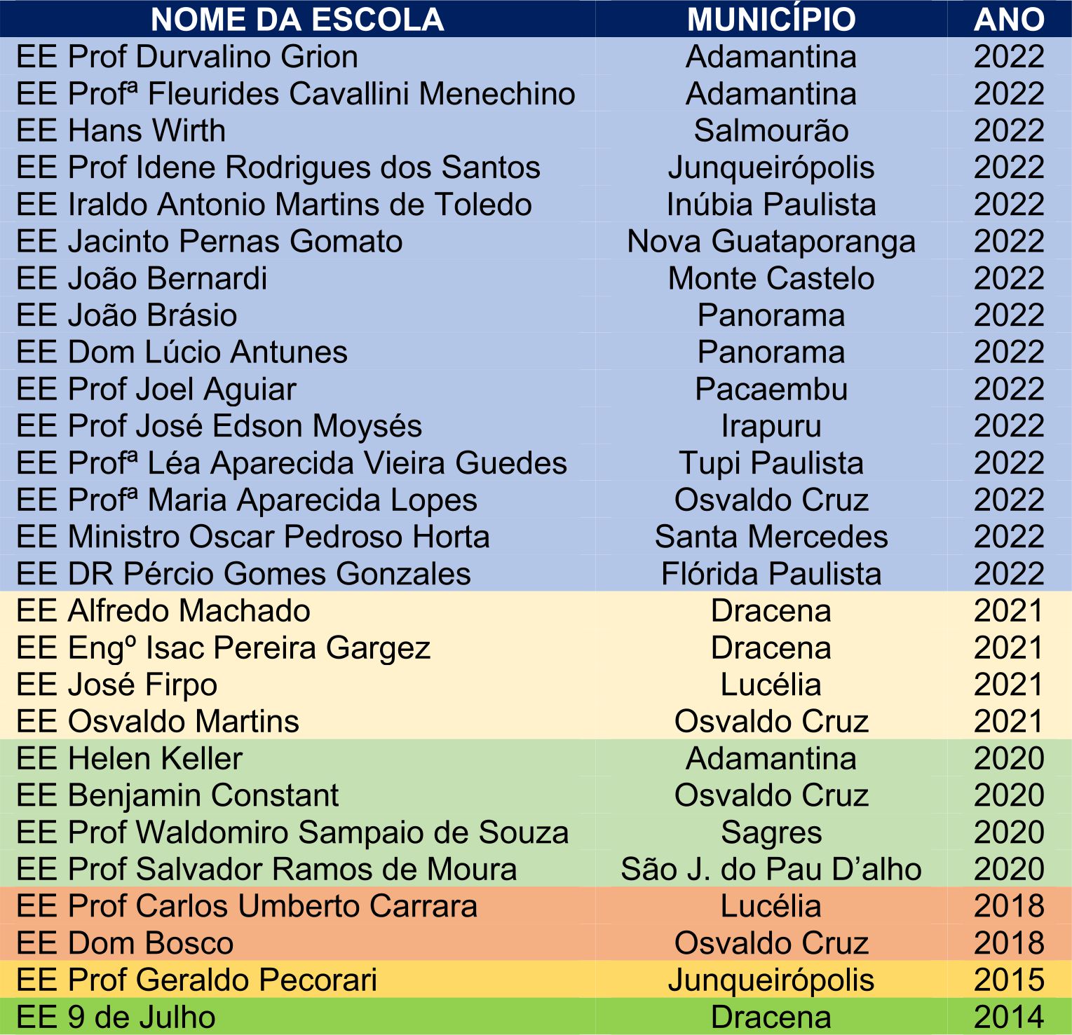 Veja o quadro da Diretoria Regional de Ensino de Adamantina: