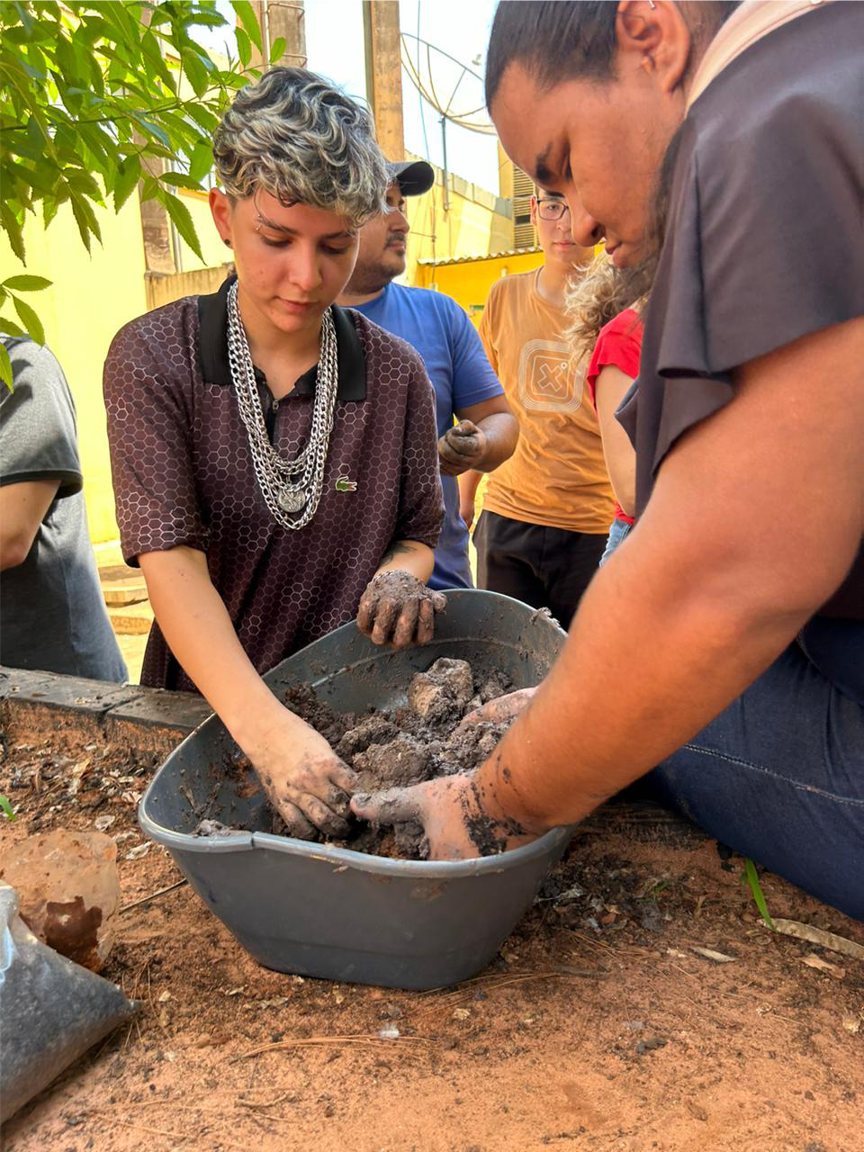 Ação mobilizou estudantes e professores da Escola Helen Keller com lançamento de bombas de sementes.