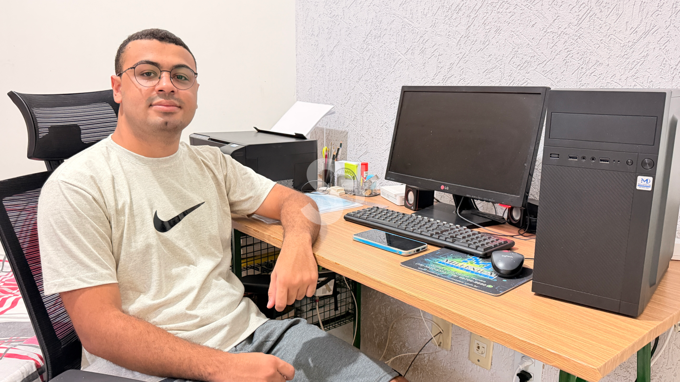 Aprovado em múltiplos vestibulares, João Gabriel em seu espaço de estudos, em casa (Siga Mais).