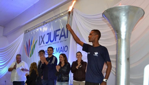 O ponto alto da cerimônia de abertura dos Jogos se deu com a entrada da tocha olímpica, empunhada pelo ex-aluno de Educação Física da FAI, Jeferson de Souza, que é atleta profissional.