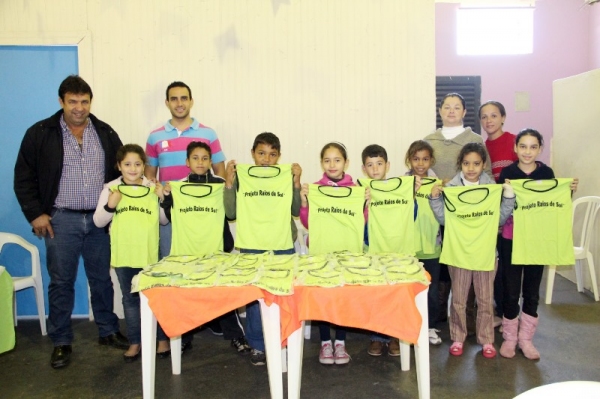 Rodrigo destacou que foram duas camisetas para cada aluno e um short para os alunos da escola Professora Rute de Oliveira Casoti. Os alunos da escola Nelson Magnani receberam 460 camisetas. O projeto Raio de Sol foram 160 e a escola Rute foram cedidas 90 camisetas e 90 shorts.