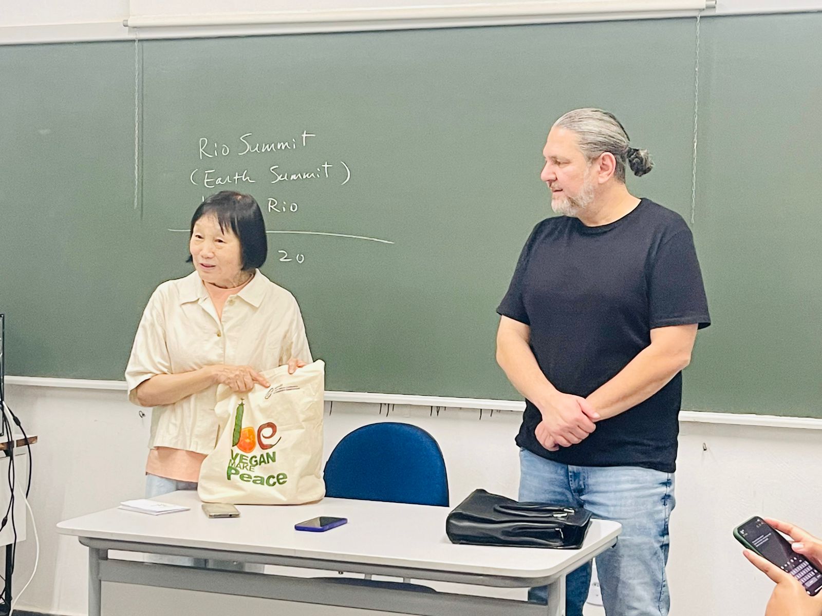 A Dra. Lee está em Adamantina, antes de seguir para Belém/PA, onde participará da COP30 (Conferência das Nações Unidas sobre as Mudanças Climáticas de 2025). Ela veio visitar sua amiga Fabrícia Sayri Nakae, que a apresentou à Prof.ª Izabel.