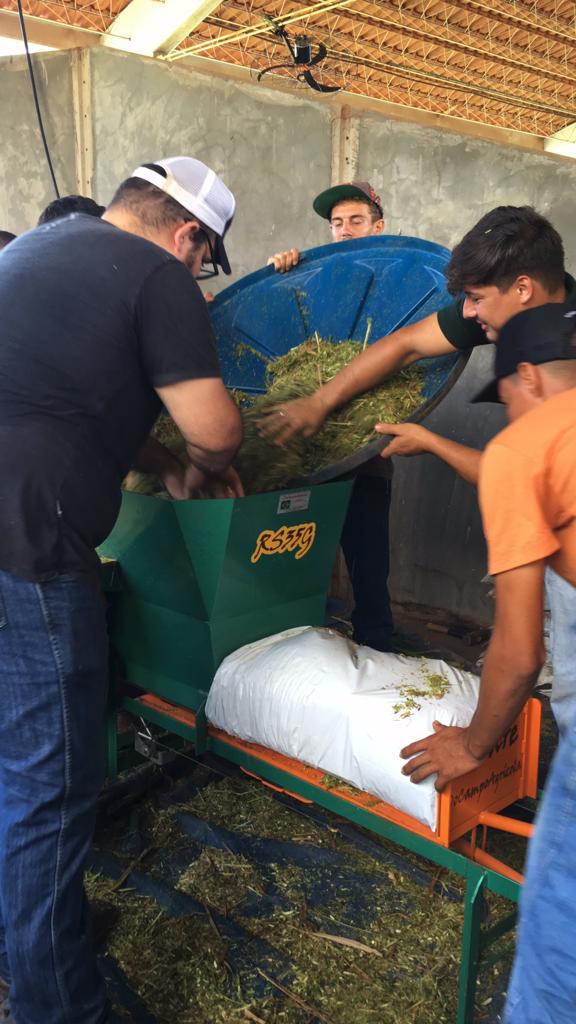 Segundo o Prof. Dr. Vagner Amado Belo de Oliveira, a ensiladeira foi gentilmente cedida pelo produtor rural e pai do aluno João Vitor Piveta, que junto com outros alunos da agronomia, cortaram as forragens com o uso de duas roçadeiras manuais STHIL (uma cedida pelo aluno João Pedro Vergílio Bachega).