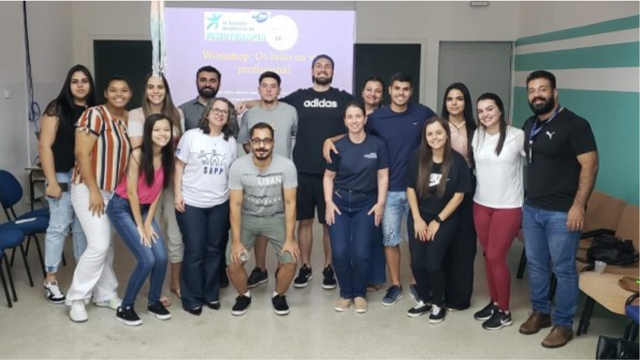 Da atividade de recepção dos calouros, em agosto, participaram os estudantes dos cursos de Direito e Enfermagem. Já o projeto “SAPP nas trilhas de formação” foi inaugurado na VI Semana de Fisioterapia, realizada de 14 a 17 de agosto, por meio da roda de conversa “Estou me formando. E agora?”, ministrada pela Prof.ª Ma. Evelyn Yamashita Biasi e a psicóloga Evelini Ferraz Rodrigues, e o workshop “Os lutos da prática profissional”, realizado pela Prof.ª Dra. Ana Vitória e o psicólogo Anísio Victor de Brito.